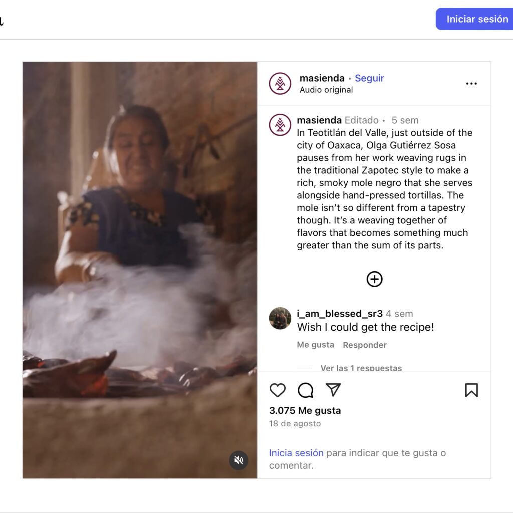 Masienda https://www.instagram.com/reel/DNgdk5rPTcn/?igsh=azkybjE3cnc2bHRw Screenshot More projects:Fashion To FigureGuerrerasAdobe AmbassadorBoncom LatamMarriot - Travel by DesignLong Way Up